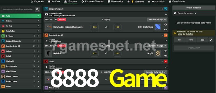 A aposta 8888 Game oferece aos jogadores a experiência mais conveniente de apostas em eSports!